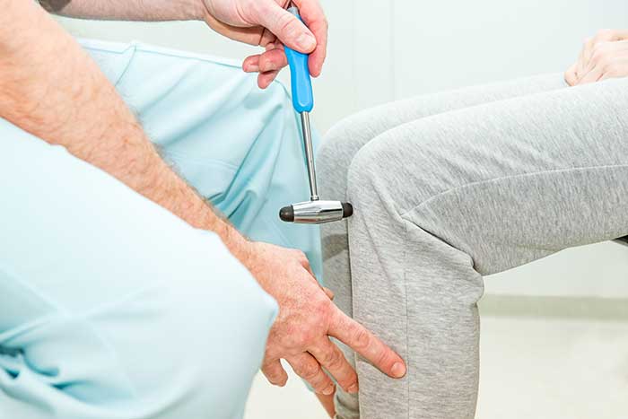Прежде всего врач ознакомится с анамнезом и осведомится о симптомах. Затем проведет осмотр, используя специальные инструменты или тесты. Доктор исследует все рефлексы. Например, рефлексы сухожилий проверяются посредством удара молоточком по сухожилию обследуемой мышцы. Врач проверит также и кожные рефлексы – он будет воздействовать на кожные покровы каким-то предметом (это может быть кусочек ткани или карандаш). Рефлексы зрачка проверяются, когда пациент следит глазами за перемещением предмета.